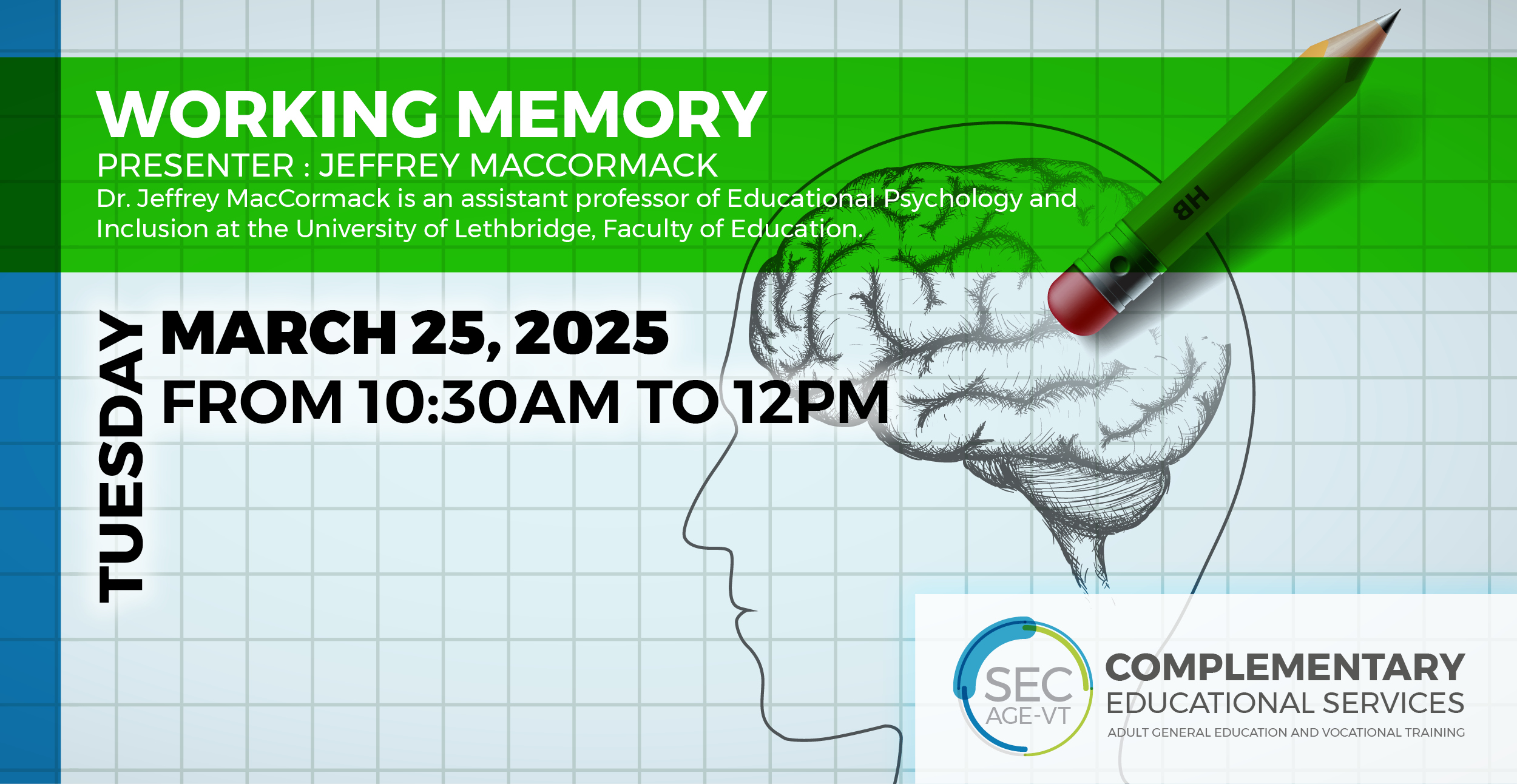 Join Dr. Jeffrey MacCormack for an engaging 1.5-hour webinar on Working Memory and Student Success, designed for educators supporting students with diverse challenges. The session will explore the impact of working memory on student learning and on teaching strategies. The talk will include practical strategies for helping students compensate for WM deficits. Dr. MacCormack, an associate professor of Educational Psychology and Inclusion, brings over 20 years of teaching experience, including work in specialized classrooms for students with multiple and profound disabilities.