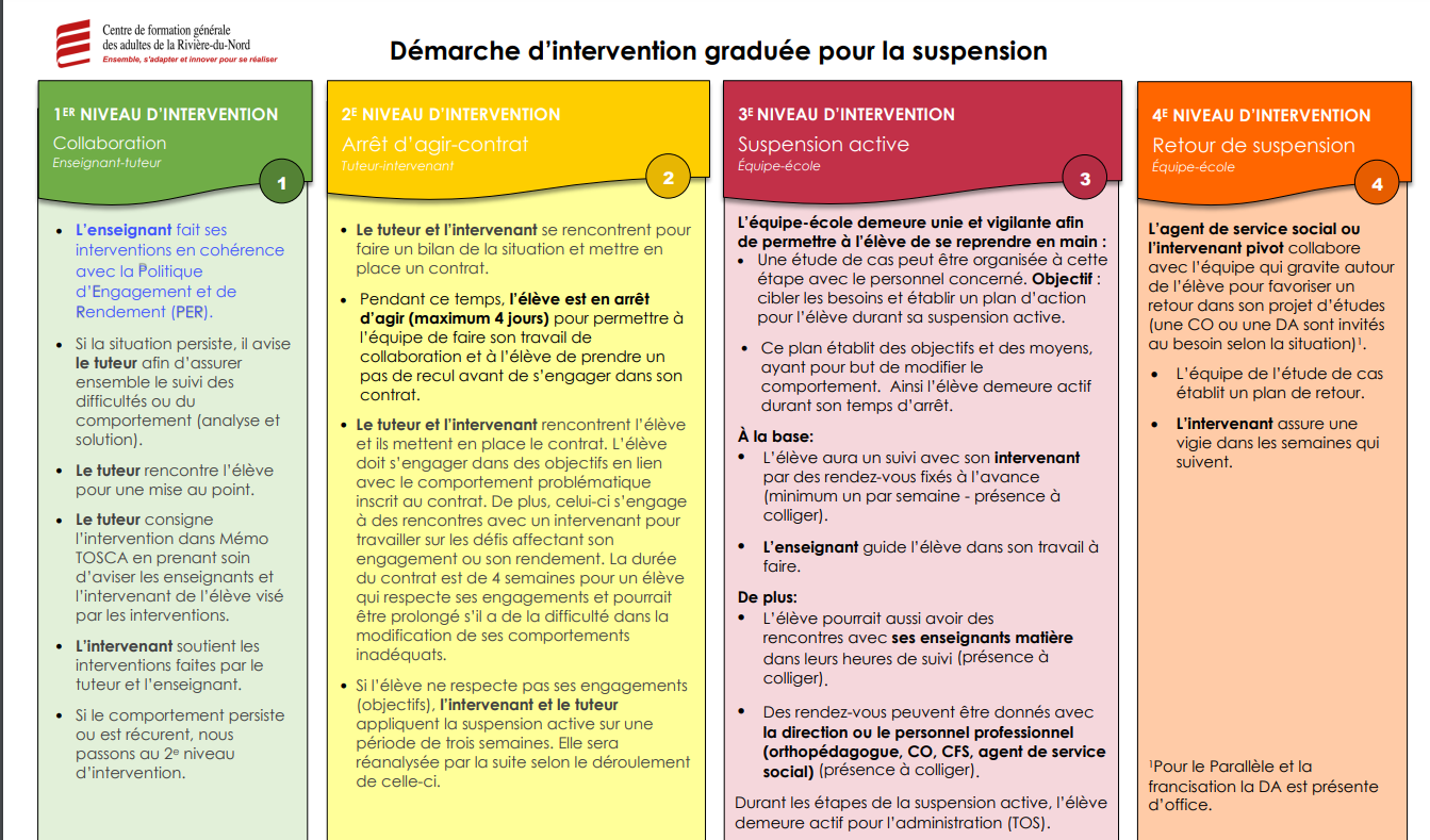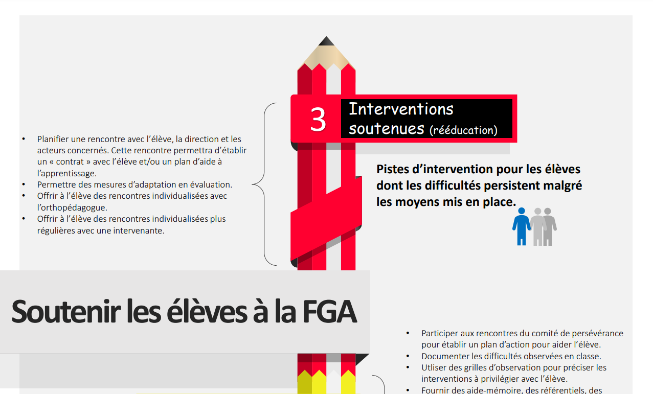 Une démarche d’aide, incluant une écoute active, un soutien adapté et la référence à des services spécialisés, assure un environnement propice à l’apprentissage et participe à la réussite éducative.
