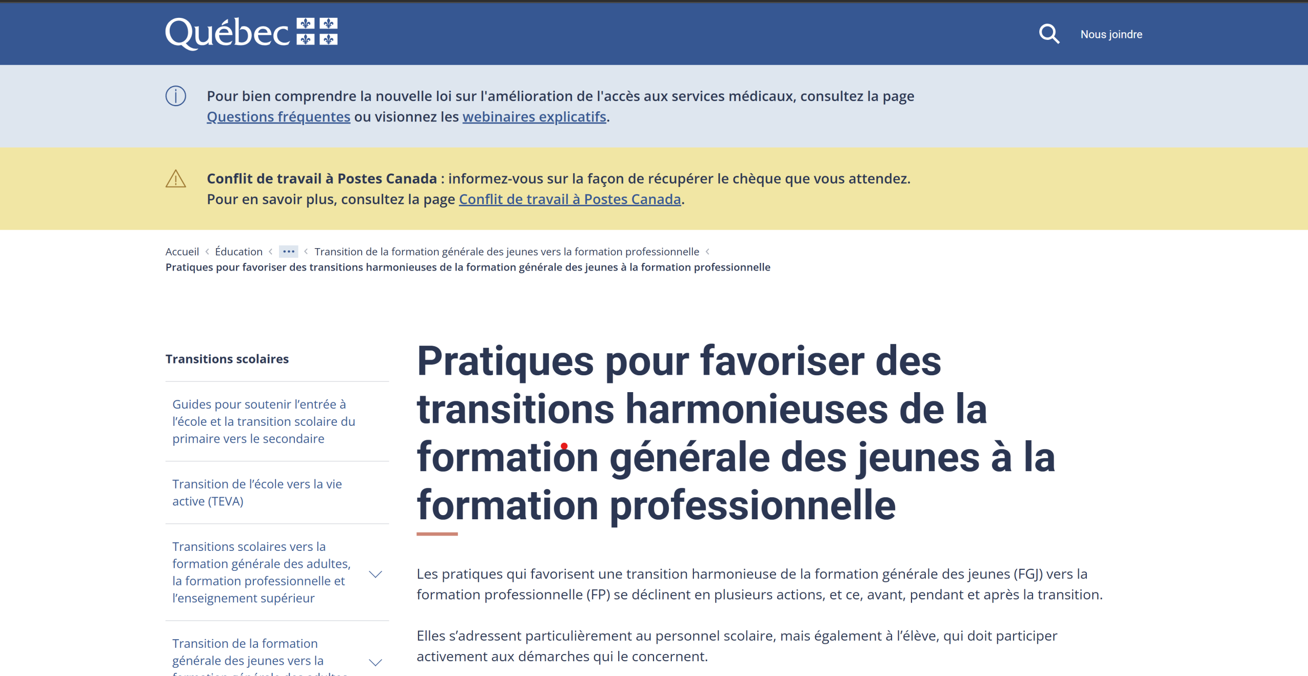 Pratiques pour les transitions (MEQ)